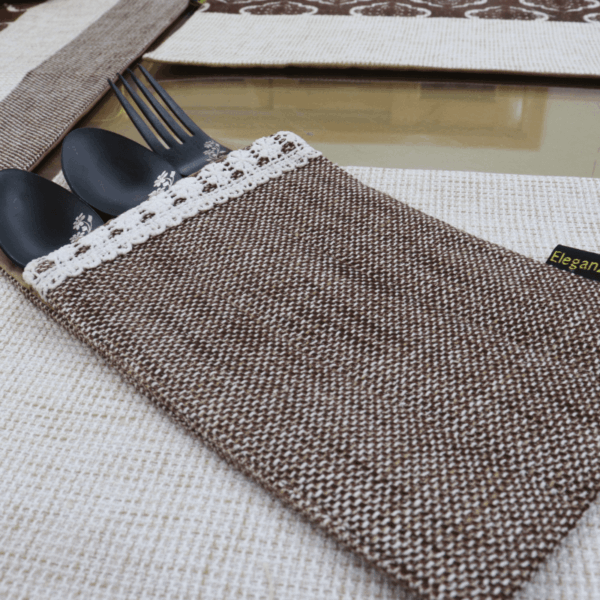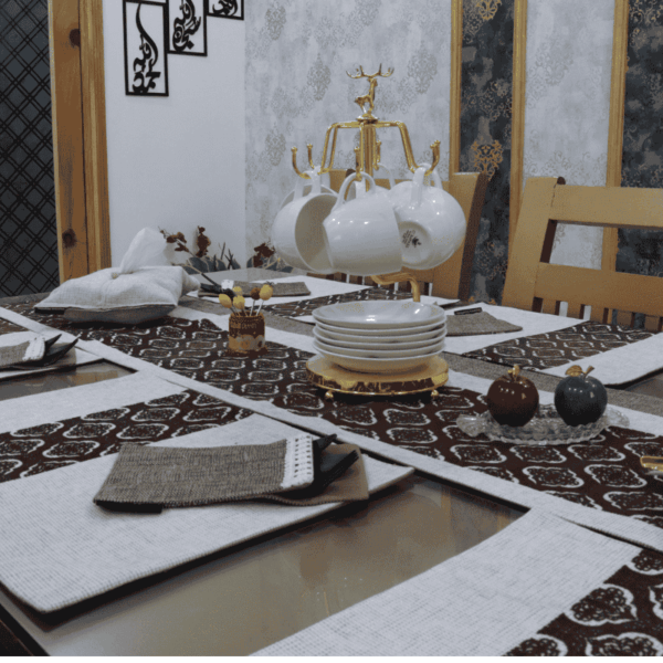 Elegant Floral Hive Stem Brown Table Cover Set with 4 mats, 1 runner & 1 tissue box — perfect for 4 seater dining tables.