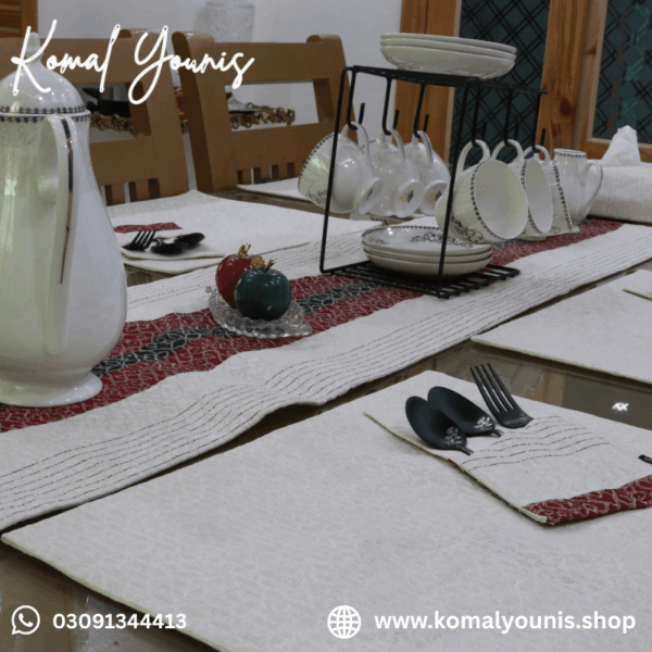 Perfect for a 6 seater dining table cover setup, the set includes 6 coordinated table mats, 6 cutlery holders, 1 elegant table runner, and 1 tissue box cover — providing a complete and stylish dining arrangement. Inspired by classic dining table cover design in India, it enhances both traditional and modern interiors effortlessly.